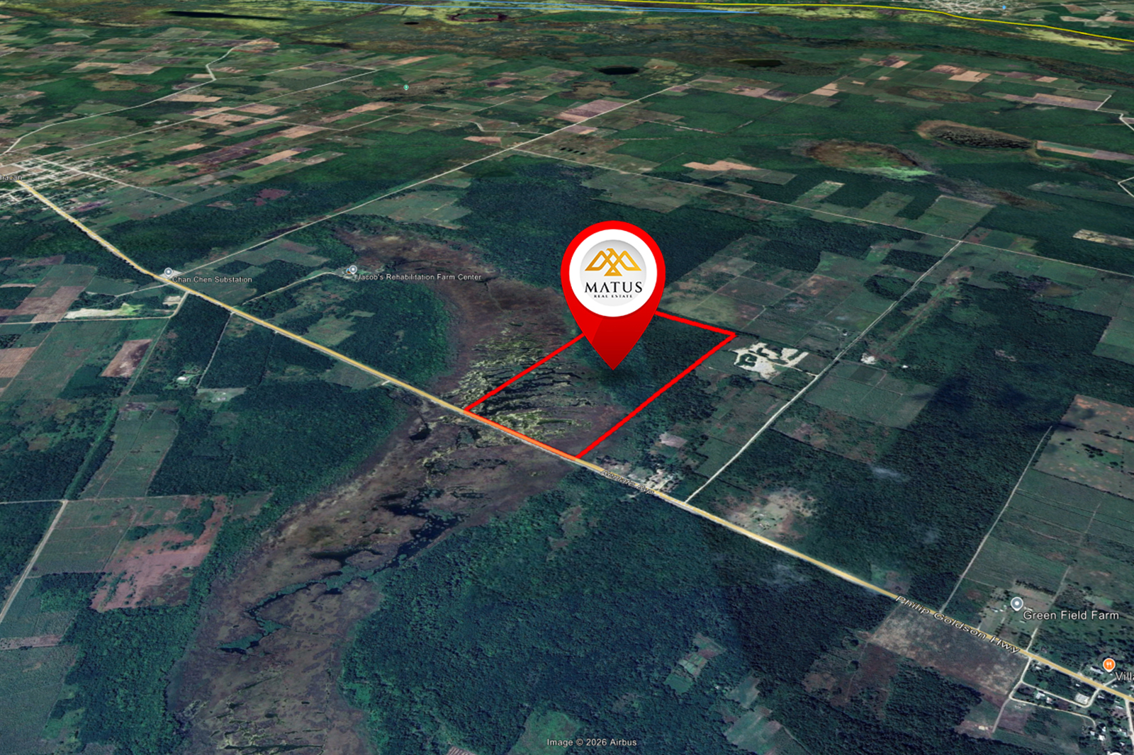 Prime Development & Investment Opportunity on the Remate Bypass / Philip Goldson Highway; This highway frontage land for sale in Corozal, Belize presents a rare opportunity to acquire approximately 119+ acres (≈ 5,186,340 sq. ft.) of strategically located development land with 1,556 feet of direct frontage along the Philip Goldson Highway / Remate Bypass, the primary transportation corridor linking Belize City to northern Belize and the Mexican border.